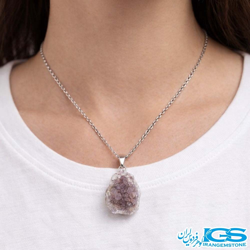 گردنبند سنگ آمیتیست ژئود اصل – نماد آرامش و محافظت