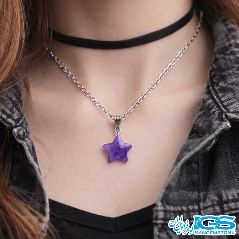 گردنبند سنگ آمیتیست ستاره با زنجیر – نماد آرامش و محافظت