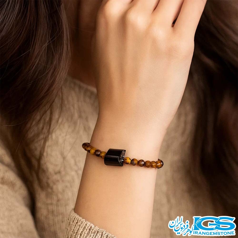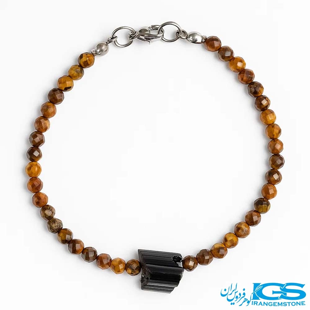 دستبند چشم ببر اصل و سنگ تورمالین راف | سنگ قدرت و شجاعت