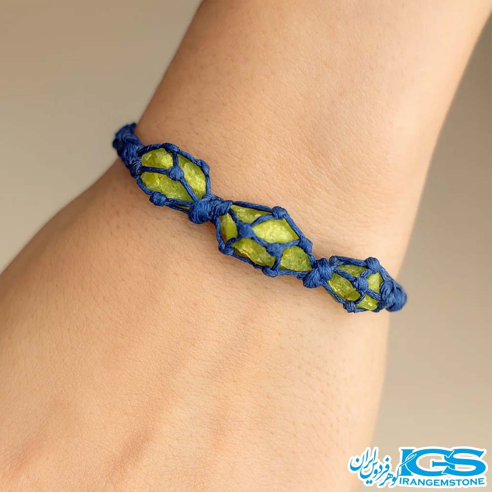 دستبند زبرجد مکرومهبافی با طراحی دستساز و استفاده از نخهای محکم و سنگ راف زبرجد، جلوهای طبیعی و خاص دارد. این دستبند قابل تنظیم بوده و برای استفاده روزانه و استایل بوهو، مینیمال یا کژوال انتخابی جذاب است. خرید سنگ زبرجد