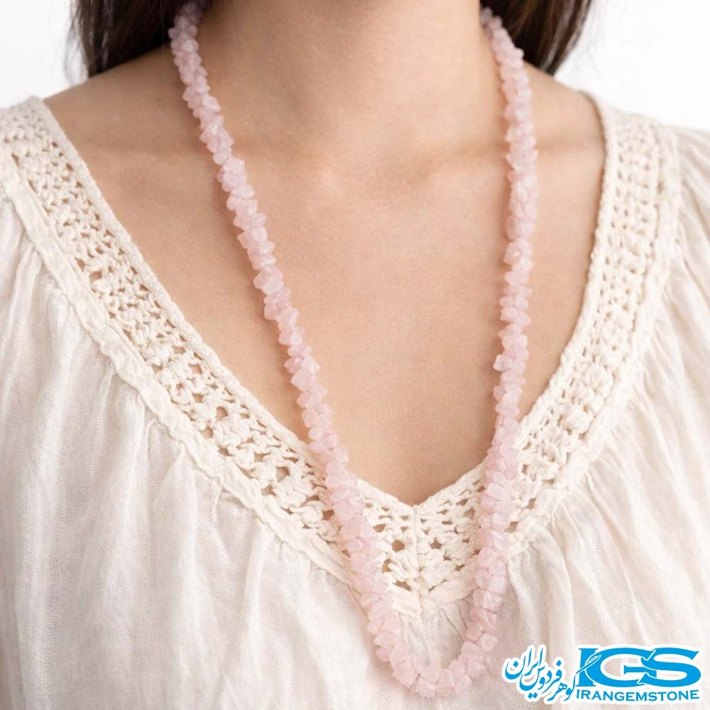 گردنبند رزکوارتز راف چیپسی – زیبایی طبیعی و انرژی مثبت در یک محصول