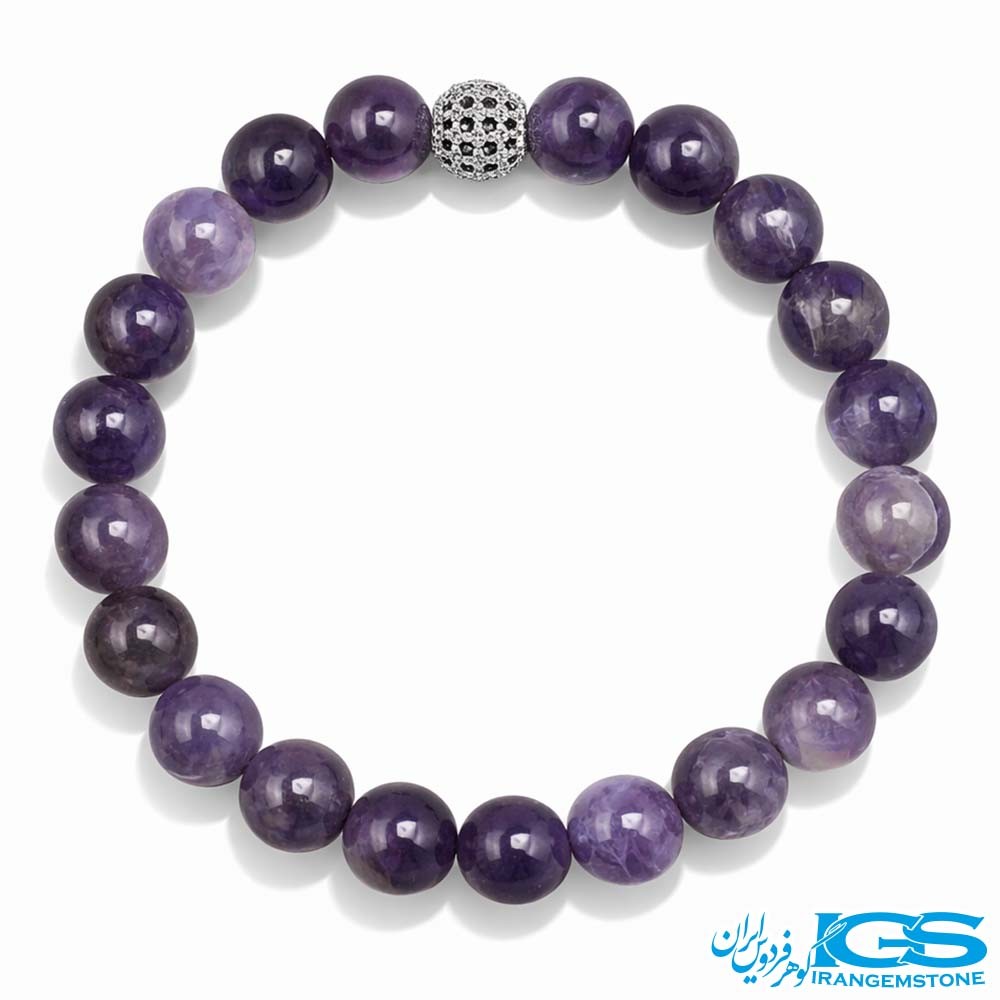 نوع سنگ: آمیتیست طبیعی (مهره‌ای گرد ۸ میلی‌متری)