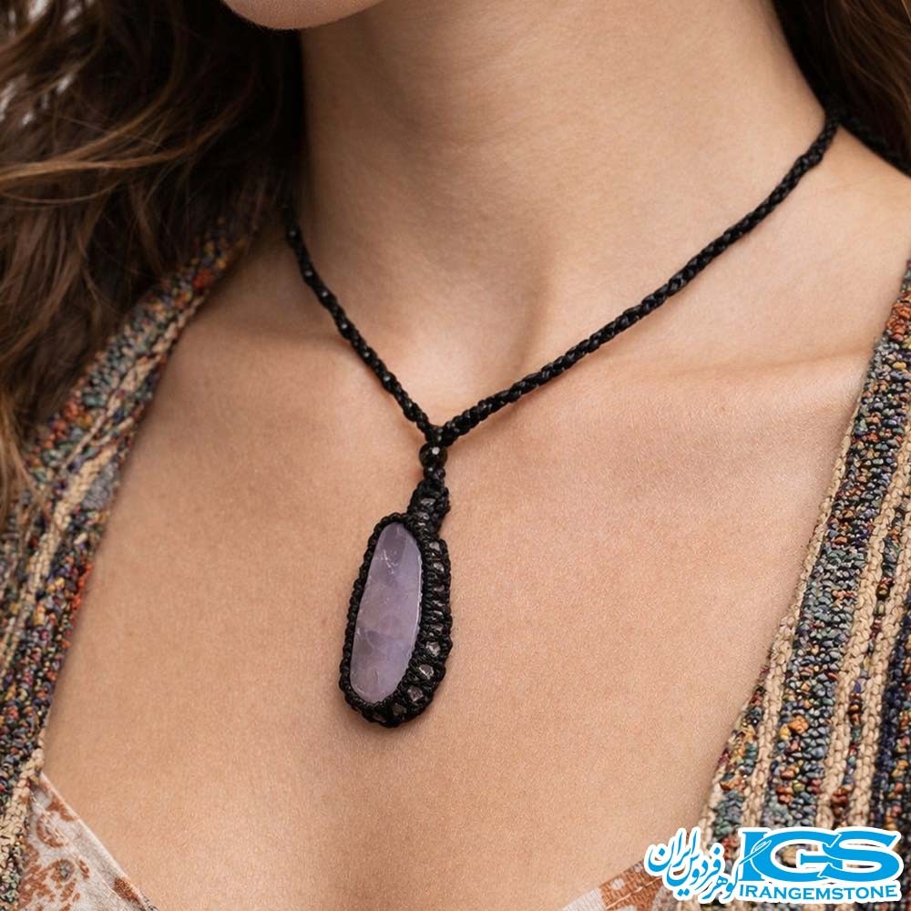 گردنبند سنگ فلوریت بنفش بافت مکرومه