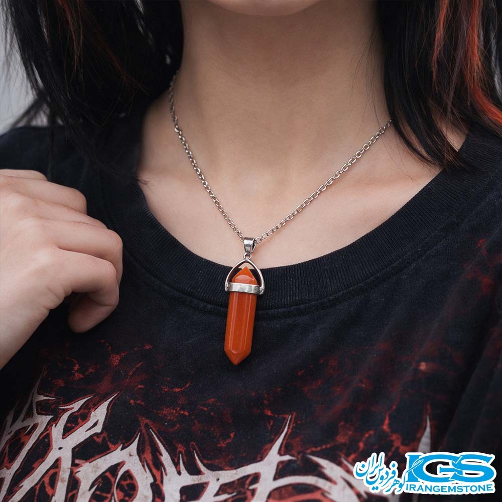 خرید گردنبند منشور جاسپر قرمز