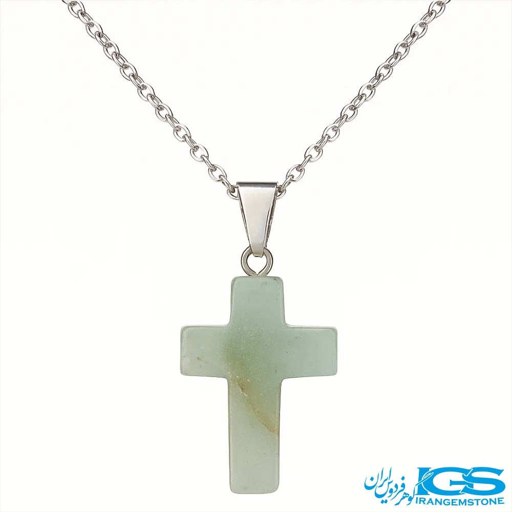 گردنبند آونتورین سبز بدون زنجیر طرح صلیب | سنگ شانس و انرژی مثبت