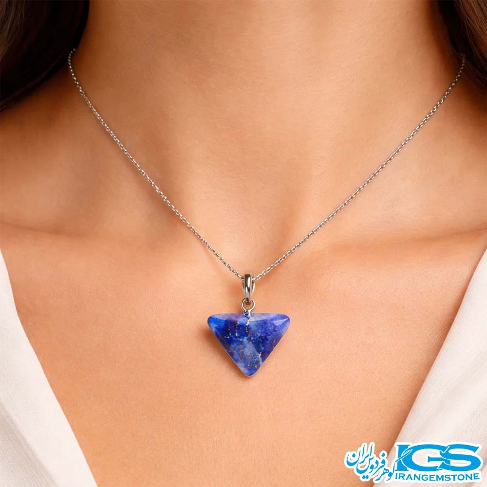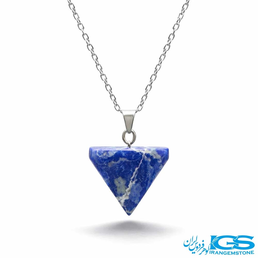 گردنبند شاقول لاجورد با زنجیر استیل | سنگی آرامش‌بخش
