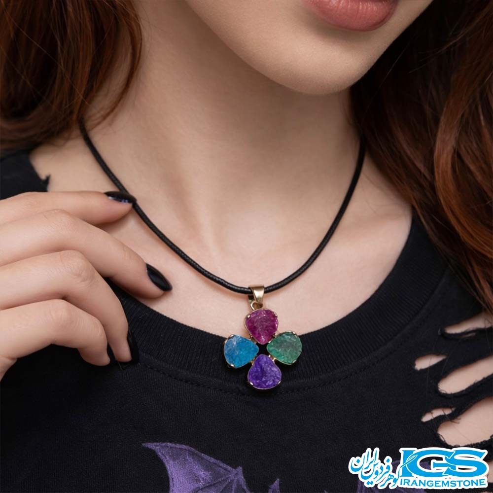 گردنبند راف سنگ کریستال کوارتز طرح گل