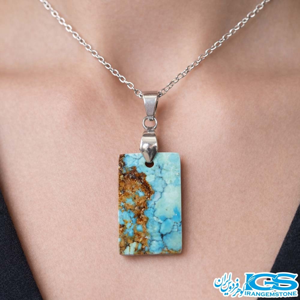 گردنبند فیروزه نیشابور با زنجیر